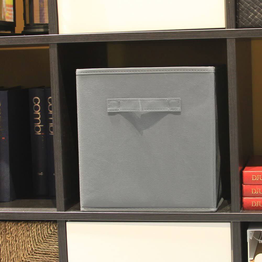 Pack of 6 Foldable Fabric Basket Bin Storage Cube for Nursery, Office and Home Decor (Grey)