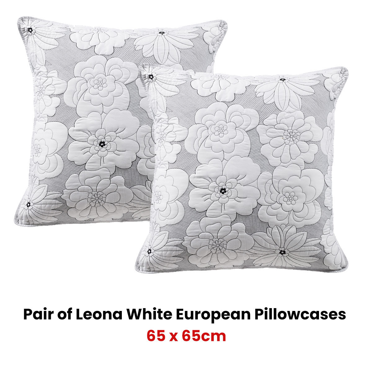 Make a statement in your bedroom with this striking design. Pair of Leona White European Pillowcases by Bianca features a floral pattern with black and white contrast stitching.