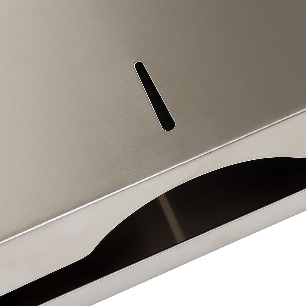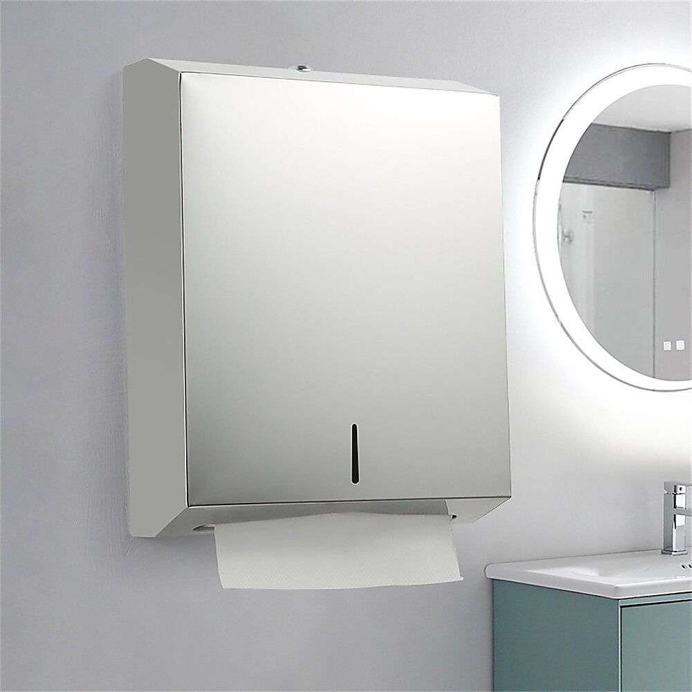 Made from brushed 201 stainless steel, this dispenser is thicker, easy to clean, and resistant to rust, providing long-lasting use. Polished edges and corners ensure hands and tissues are protected from scratches.The wall-mounted design includes all necessary hardware for easy installation.This dispenser accommodates up to 400 c-fold, tri-fold, z-fold, multi-fold, and m-fold paper towels.