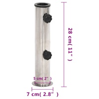 This parasol base offers a sturdy and reliable foundation to ensure your umbrella remains stable and upright. Strong and durable material: The umbrella base is made of durable stainless steel, providing resistance to corrosion and rust and ensuring years of reliable use.Space-saving and portable: Thanks to its compact design, this umbrella base takes up less space on your deck or patio. It is also lightweight for easy transport.Compatible with multiple pole sizes: The tube diameter can be easily adjusted using a tightening knob to accommodate umbrella poles with a diameter of 38 and 48 mm. Good to know:This umbrella base is not suitable for installing large, heavy umbrellas or flagpoles on the deck and patio.