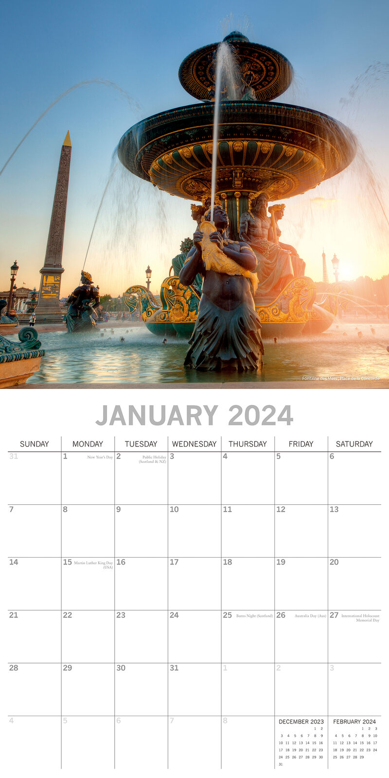 Paris 2024 Square Wall Calendar 16 Month Premium Planner Christmas New Year Gift