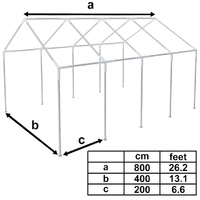 This marquee will be ideal for almost all outdoor events, such as shows, parties, camping trips, festivals and so on. You can also set it up in your backyard as a large sunshade for your family and guests. It is hard-wearing for year-round use. Made of 100% PE material, the tent fabric is UV protective and water resistant. There are 2 wall panels, each with 4 decorative windows. And the zipped, roll-up doorway design ensures easy entrance. This frame is manufactured from steel and thus highly durable. Assembly is really easy. Delivery includes a canopy top and four side panels, a steel frame and stakes and ties! NOTE: This product should NEVER be used under bad weather, such as strong wind, heavy rain, snow, storm, etc.