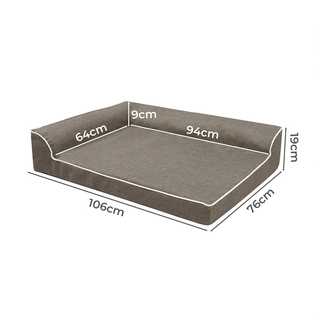 The unique L-shaped bolster sofa bed design offers additional support for your pet's neck and head, promoting deep, restorative sleep. The surrounding bolsters not only provide a sense of security but also allow your pet to snuggle comfortably and relax fully.