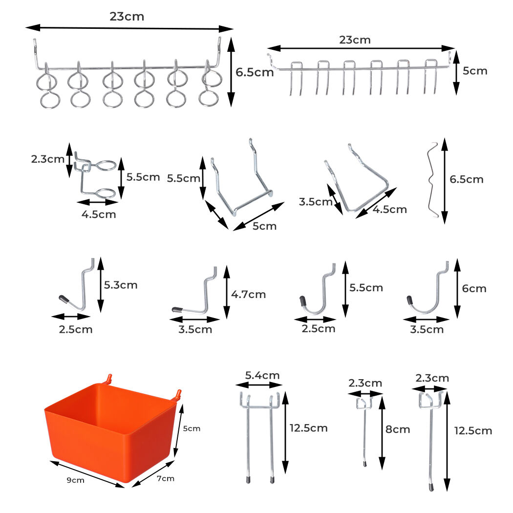 Organise your tools according to how they are used. Change them around as your tool collection grows with your DIY pegboard hooks. Great for your shed garage or workshop.