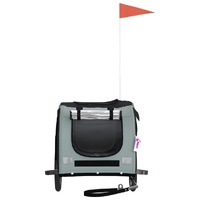 This handy pet bike trailer is a great addition to your pet's day out, allowing your pet to enjoy a more comfortable journey. Durable frame: Iron is a strong and hard material. It's a solid favourite in industrial and furniture construction. With a frame made of iron, the bicycle trailer is sturdy and reliable, giving you peace of mind when riding on the road.Comfortable bike trailer: This bike cargo trailer is made from oxford fabric and features the PVC cover to keep your pet out of the drizzle. In addition, there is a black load-bearing board at the bottom for comfortable space.Convenient design: Zippered front and back doors make it easy to get in and out, and the mesh windows and a zipped roof allow air to circulate inside and keep your pet cool during the journey.Safe riding: The bicycle cargo trailer has two large wheels that allow for smooth and safe travel on various grounds and the reflectors on the outside provide visibility in the dark, plus the flag can increase traffic safety.Wide applications: Perfect for carrying small dogs and pets, this pet bike trailer can be attached to your bike easily. It can also be used to carry groceries, camping equipment, sporting goods, or whatever you need to take with you!