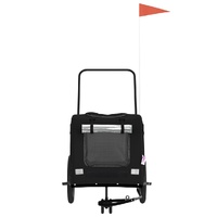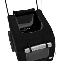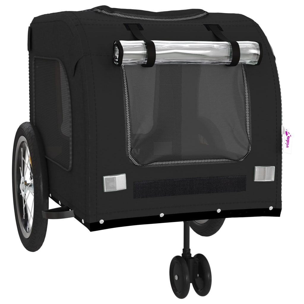 This handy pet bike trailer is a great addition to your pet's day out, allowing your pet to enjoy a more comfortable journey. Durable frame: Iron is a strong and hard material. It's a solid favourite in industrial and furniture construction. With a frame made of iron, the bicycle trailer is sturdy and reliable, giving you peace of mind when riding on the road. Comfortable bike trailer: This bike cargo trailer is made from oxford fabric and features the PVC cover to keep your pet out of the drizzle. In addition, there is a black load-bearing board at the bottom for comfortable space. Convenient design: Zippered front and back doors make it easy to get in and out, and the mesh windows and a zipped roof allow air to circulate inside and keep your pet cool during the journey.Safe riding: The bicycle cargo trailer has two large back wheels and one small front wheel that allow for smooth and safe travel on various grounds and the reflectors on the outside provide visibility in the dark, plus the flag can increase traffic safety. Wide applications: Perfect for carrying small dogs and pets, this pet bike trailer can be attached to your bike easily. It can also be used to carry groceries, camping equipment, sporting goods, or whatever you need to take with you!