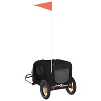 This handy pet bike trailer is a great addition to your pet's day out, allowing your pet to enjoy a more comfortable journey. Durable frame: Iron is a strong and hard material. It's a solid favourite in industrial and furniture construction. With a frame made of iron, the bicycle trailer is sturdy and reliable, giving you peace of mind when riding on the road.Comfortable bike trailer: This bike cargo trailer is made from oxford fabric and features the PVC cover to keep your pet out of the drizzle. In addition, there is a black load-bearing board at the bottom for comfortable space.Convenient design: Zippered front and back doors make it easy to get in and out, and the mesh windows and a zipped roof allow air to circulate inside and keep your pet cool during the journey.Safe riding: The bicycle cargo trailer has two large wheels that allow for smooth and safe travel on various grounds and the reflectors on the outside provide visibility in the dark, plus the flag can increase traffic safety.Wide applications: Perfect for carrying small dogs and pets, this pet bike trailer can be attached to your bike easily. It can also be used to carry groceries, camping equipment, sporting goods, or whatever you need to take with you!