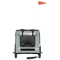 This handy pet bike trailer is a great addition to your pet's day out, allowing your pet to enjoy a more comfortable journey. Durable frame: Iron is a strong and hard material. It's a solid favourite in industrial and furniture construction. With a frame made of iron, the bicycle trailer is sturdy and reliable, giving you peace of mind when riding on the road. Comfortable bike trailer: This bike cargo trailer is made from oxford fabric and features the PVC cover to keep your pet out of the drizzle. In addition, there is a black load-bearing board at the bottom for comfortable space. Convenient design: Zippered front and back doors make it easy to get in and out, and the mesh windows and a zipped roof allow air to circulate inside and keep your pet cool during the journey.Safe riding: The bicycle cargo trailer has two large wheels that allow for smooth and safe travel on various grounds and the reflectors on the outside provide visibility in the dark, plus the flag can increase traffic safety. Wide applications: Perfect for carrying small dogs and pets, this pet bike trailer can be attached to your bike easily. It can also be used to carry groceries, camping equipment, sporting goods, or whatever you need to take with you!