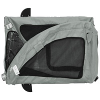 This handy pet bike trailer is a great addition to your pet's day out, allowing your pet to enjoy a more comfortable journey. Durable frame: Iron is a strong and hard material. It's a solid favourite in industrial and furniture construction. With a frame made of iron, the bicycle trailer is sturdy and reliable, giving you peace of mind when riding on the road.Comfortable bike trailer: This bike cargo trailer is made from oxford fabric and features the PVC cover to keep your pet out of the drizzle. In addition, there is a black load-bearing board at the bottom for comfortable space.Convenient design: Zippered front and back doors make it easy to get in and out, and the mesh windows and a zipped roof allow air to circulate inside and keep your pet cool during the journey.Safe riding: The bicycle cargo trailer has two large wheels that allow for smooth and safe travel on various grounds and the reflectors on the outside provide visibility in the dark, plus the flag can increase traffic safety.Wide applications: Perfect for carrying small dogs and pets, this pet bike trailer can be attached to your bike easily. It can also be used to carry groceries, camping equipment, sporting goods, or whatever you need to take with you!