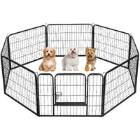 This heavy duty pet playpen is made of premium metal wires. Non-toxic painted frame guarantees sturdiness and durability.Six detachable panels can be set up in different shapes to meet your various needs.If you need a larger fence for your pets to enjoy running, you can order more sets and combine them together.60cm tall playpen is ideal for small animals like puppies, kittens, rabbits, fowls, guinea pigs to play in.Also a door with latch and metal bars help keep them securely confined in place.This foldable playpen can be collapsed for easy storing and also simple to set up in minutes.