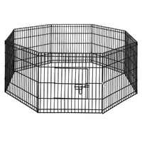 Give your pet the play area it deserves without worrying about it messing up your home. Our 8-panel Pet Playpen is just the answer to let your pet have great fun within a designated area.Made from durable powder-coated steel frames, the 8-panel Playpen can be arranged in a number of ways to suit your pet's play habits. Whether it's an octagon or a square pen, the Playpen easily configures with just simple adjustments.Better still, you can actually get two 8-panel sets and create an expanded play area for your furry friend. And when play time is over, the Playpen can be easily folded away for storage or travel.Security and safety measures include a bolt latch for the access door, two locks and safe round edges respectively.Ideal for a variety of pets including puppies, kittens, guinea pigs and rabbits, the Pet Playpen can be used both outdoors and indoors.