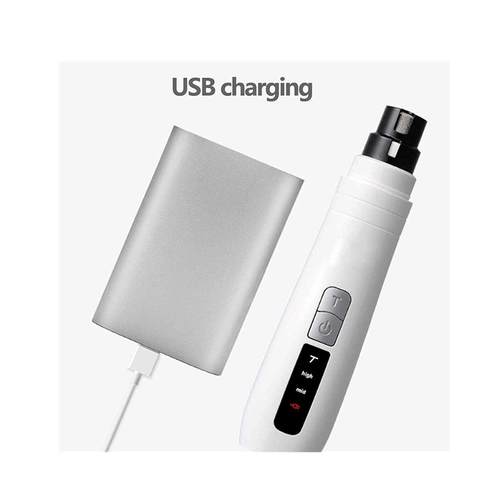 The cordless dog grinder is rechargeable and has an indicator blue light on the bottom that turns on when charging. Each grinder has a built-in battery that lasts 8 hours after a 1.5hcharge. The lightweight and ergonomic body design also makes it easier to handle in your right or left hand.