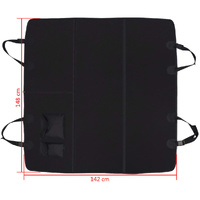 The back seat protector, made of coated polyester oxford fabric, is hardwearing, waterproof and dirt repellent. The cover can be attached to the front and rear headrests with adjustable straps. It will fit most cars and is easy to install. The zip makes it possible to divide the cover so your dog can share the back seat with a passenger. When zipped up, the cover will create a barrier to keep pets from climbing into to front of the vehicle and distracting you. Two pockets on the cover will be perfect to store pet accessories.