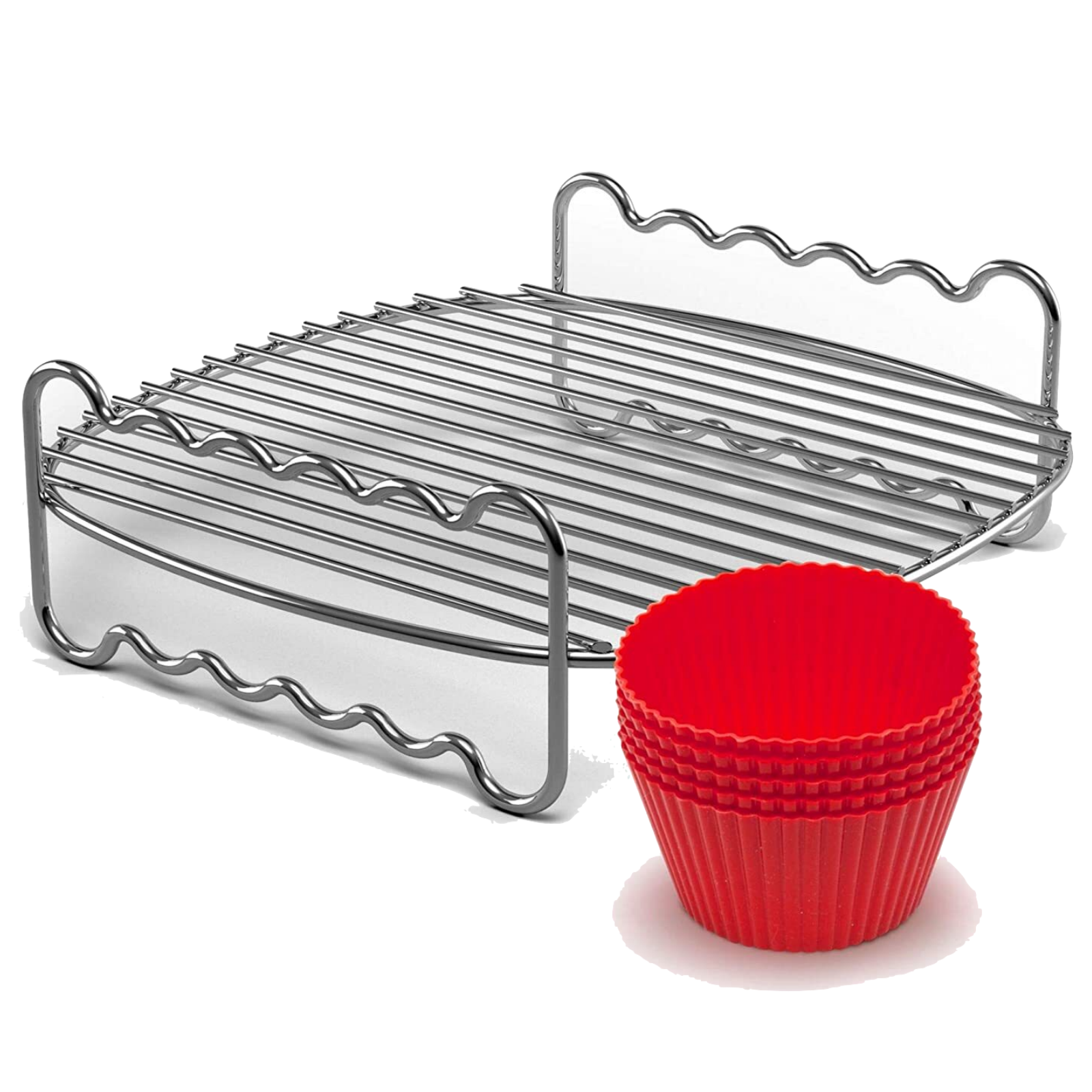With this special Philips Airfryer Party master kit, you can host a fun and healthy party with all your favourite party dishes. Maximize the Airfryer's cooking capacity with the double layer rack and muffin cups. With the double layer accessory, you can maximize your Airfryer's cooking space. Bake, grill, or fry tasty burgers, chicken wings, fish, and more in an easy, quick, healthier way. There is always an excuse to have muffins. Whether there is a birthday coming up or you just want to treat your family. These muffin cups allow you to create individual treats for your guests. A booklet with chef's tips, beginner's recipe, and Airfryer cooking times is included. You can safely put these accessories in your dishwasher for cleaning.