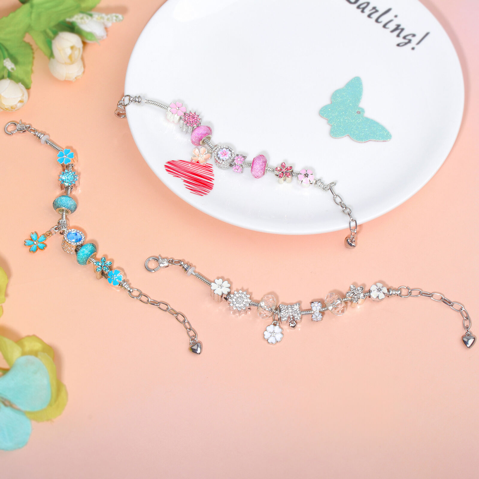 1. 6 Length Options (16-21cm): Customized fit for all wrist sizes, comfy enough for all-day wear. 2. Romantic Magnolia Rhinestone Design: Sparkling pink rhinestones + a dainty magnolia pendant boost feminine charm. 3. Alloy with Electroplating: Resists fading and tarnishing, keeping its sleek shine long-term. 4. Premium Enamel Craft: Vibrant pink colors stay vivid and intact, no peeling or discoloration. 5. Glittery Glass Beads: Add a luxurious, delicate texture to elevate your daily outfits vibe. |