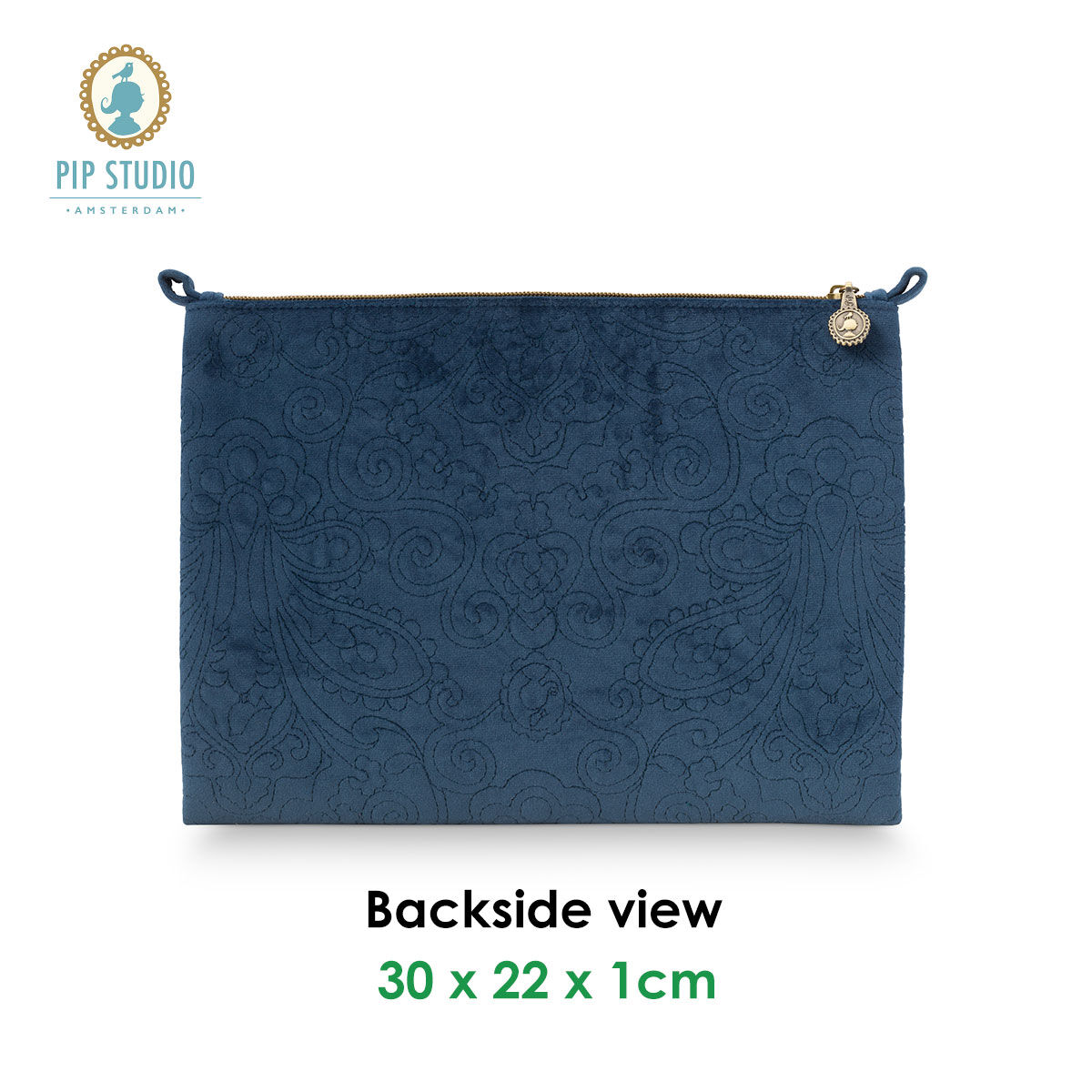 This Velvet Quilted Dark Blue Large Cosmetic Flat Pouch by PIP Studio is perfect for daily use in your bathroom or to take with you on a trip. The cosmetic bag is made of a beautiful velvet fabric and therefore very soft while using it. Within this velvet fabric you will find a detailed stitching with a floral design. This cosmetic bag matches perfectly with our Homewear items of this season. Complete your total look for a stunning result.
