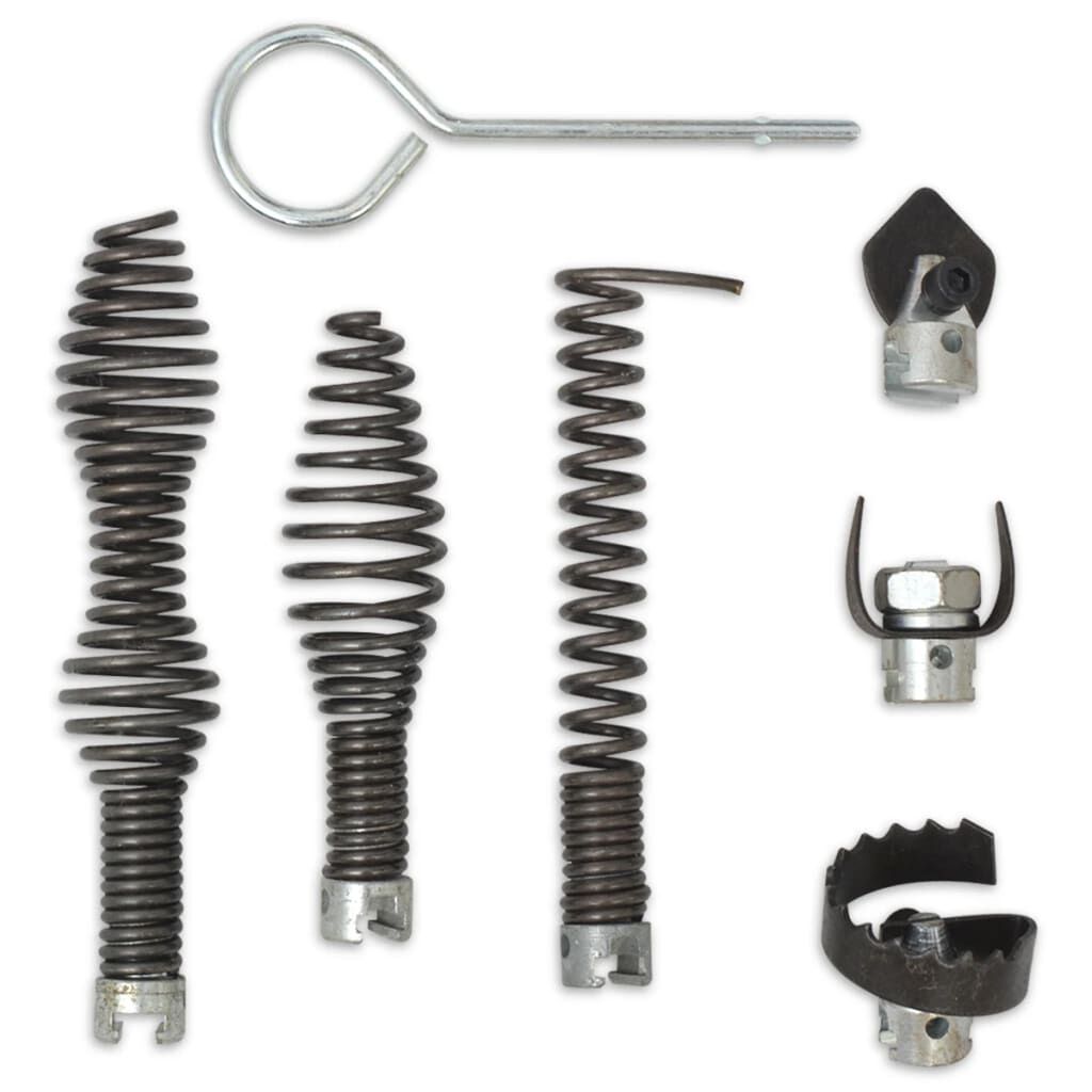 This powerful pipe cleaner is delivered with spirals of different sizes and a comprehensive set of drill heads that allow you to mechanically clean pipes and remove blockages. The drain cleaner is suitable for both professional and household applications. The 250 W machine has a powerful motor that rotates the spiral, both clockwise and counter-clockwise, at 400 rpm. The three-stage switch rotates the spiral in the desired direction or stops the rotation. The adaptor magazine with spiral is suitable for drains with multiple curves or for pipes with a small diameter. The spiral set consists of three partial spirals which can be combined with the T-slot coupling. Thanks to the spiral basket, the set can be stored and transported easily. The extensive set of drills has everything you need to mechanically clean your drain without chemical additives. The drill heads can be easily installed at the end of the cleaning spiral with the T-slot coupling. The key facilitates a quick and easy shortening or lengthening of the spiral and quick tool change. A pair of leather gloves is also included in delivery.