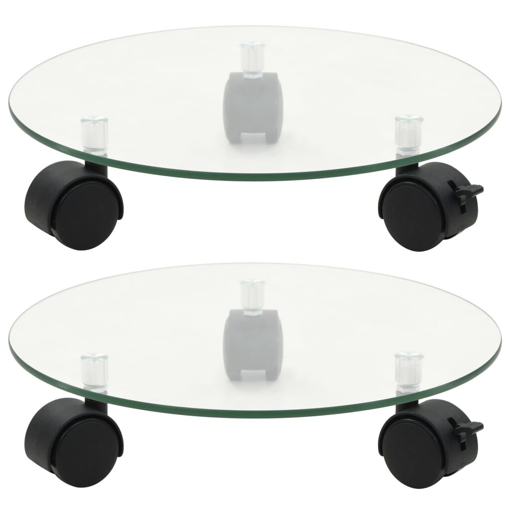 Quickly move around your potted plants or flowers with our handy plant rollers! With their compact and timeless design, these rolling plant stands will make a great addition to any living space. The top of these plant trolleys is made of tempered glass, which is stronger and safer than normal glass. Thanks to the 360° rotatable castors, the plant stands can be moved around effortlessly. One of the castors is equipped with a brake so that the plant rollers can be stabilised when needed. The plant movers are easy to assemble. Delivery includes 2 plant rollers.