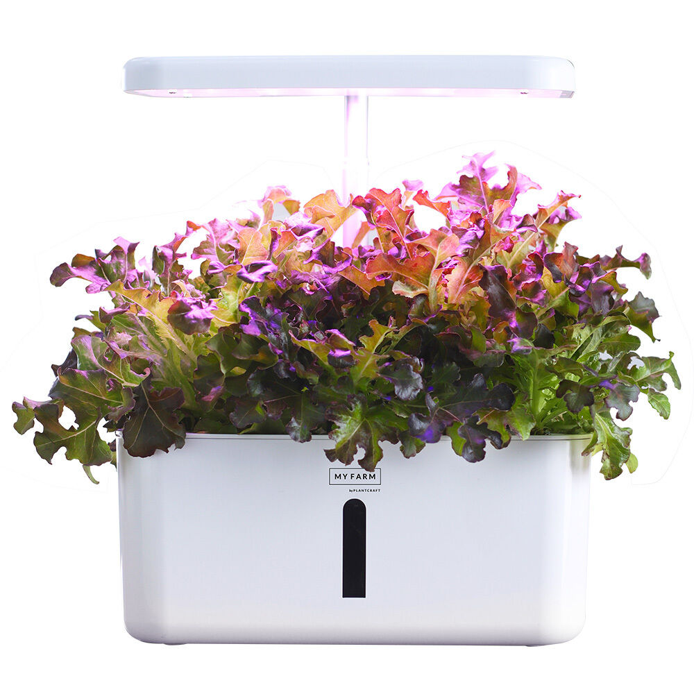 Designed for easy set-up, the MY FARM Hydroponics System has a large 3L water reservoir and a water viewing window which greatly reduces the need to rewater the plants, while using 90% less water than traditional growing methods. All the joy of gardening without the hassle!