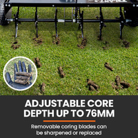 The PlantCraft aerator comes equipped with a universal hitch pin for hassle-free attachment to ride on mowers, garden tractors, and ATVs. This tow behind aerator can be weighted for an increased weight of up to 50kg to work with tougher ground and higher clay content. The 24 coring blades are removable for sharpening or replacing when worn.