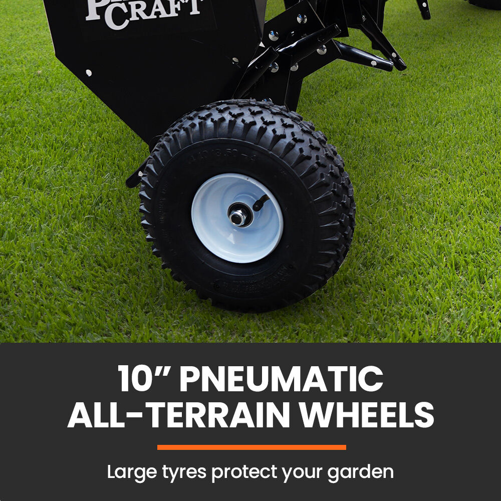 $351.55This PlantCraft Tow Behind Lawn Plug Aerator is an exceptional piece of garden equipment. This reliable time saving machine has a rugged steel frame with a rust-resistant powder coat finish. This lawn aerator roller has a plug depth of up to 3 (76mm) to improve a lawns water and fertiliser absorption at the root layer, while the wide 10 pneumatic tyres protect the turf. You can get the job done quickly too, as it's rated to be towed at speeds of up to 8km/h.
