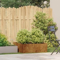 Enhance your outdoor spaces with this stylish planter, perfect for gardens, balconies, and patios. Durable material: Weathering steel is anti-corrosive by its very nature. It develops a rusty protective layer against corrosion when first exposed to atmospheric conditions. Thus, you don't need to paint it. This can help you save on maintenance and repair costs. The distinctive brown colour on the weathering steel will surely be an eye-catcher. Finally, weathering steel is exceptionally durable and will stand up to the test of time.Ample space: The deep and wide raised bed offers plenty of space for soil, providing an ideal growing environment for plants, vegetables, herbs, and flowers. Its generous size allows for versatile planting options, perfect for any garden or outdoor space.Enhanced stability: Equipped with interior support brackets, this flower box ensures reliable sturdiness and stability. The reinforced design keeps the structure secure, even when filled with soil, offering long-term durability for your gardening needs.Decorative appeal: This planter box is designed to showcase your favorite plants or flowers while adding a stylish touch to your garden or patio. Its modern aesthetic and natural finish make it a standout decorative element that blends seamlessly with outdoor decor.Open bottom design: Featuring an open bottom, the planter allows for efficient drainage of excess water, preventing waterlogging. The design also promotes healthy plant growth by letting roots extend freely into the soil for better nutrient absorption. Good to know:This product is not rusted yet and has a normal metal color when you receive it, but rust will develop over time. You can speed up the rusting process by spraying it with soapy water or salt water. To keep your clothes stain-free, avoid contact with the developing rust layer.This planter does not include a bottom.