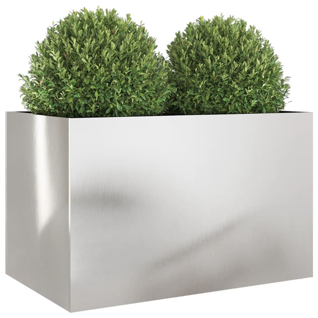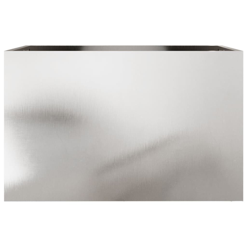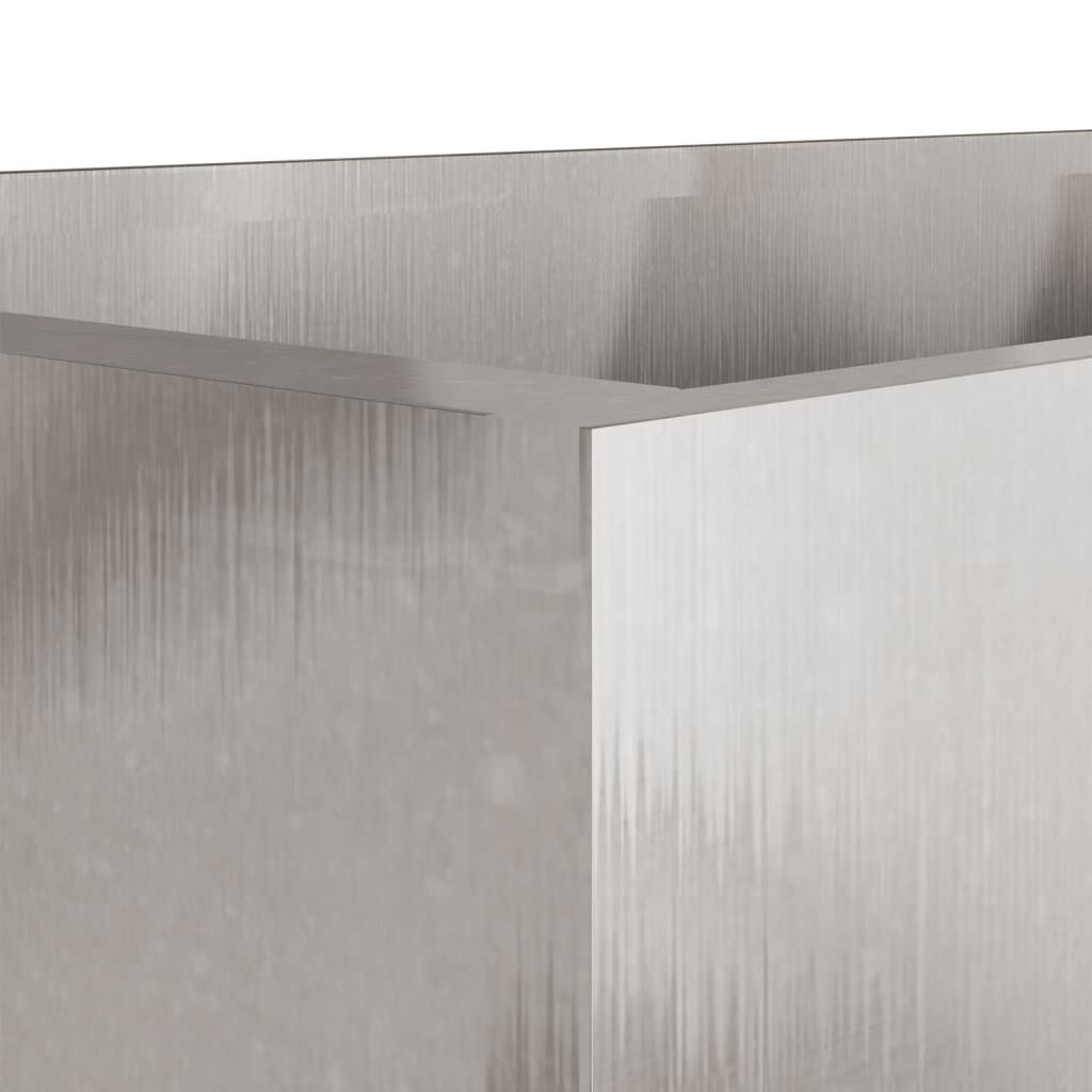 This planter would be great for DIY enthusiasts to decorate your gardens, balconies, or patios. Durable material: The garden planter is made of stainless steel which provides resistance to corrosion and rust for years of reliable use. The smooth surface is easy to clean and maintain.Sturdy frame: The steel frame of the raised bed ensures sturdiness and stability.Decorative function: The flower box can hold your favourite plants or flowers, which is ideal for your garden as decoration. Good to know:The stainless steel surface has a protective film that can be removed to reveal the shiny metal underneath.