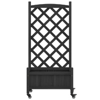 This wooden planter with trellis and wheels is an excellent choice for climbing plants in your garden, patio and terrace. Solid fir wood: Solid fir wood is a beautiful and durable material that maintains its integrity even when exposed to moisture. It does not dry out or warp, making it a reliable choice.Sufficient space: This garden planter is wide and deep enough, providing ample room for growing a variety of plants, flowers, and vegetables. Additionally, the hollow bottom allows for good ventilation and drainage.Trellis fence panel: The patio planter comes with a beautiful trellis fence panel that is perfect for supporting climbing and hanging plants like roses, ivy, or vines. It also adds a stunning visual feature to your outdoor space.Convenient wheels: The solid wheel helps to easily move around your planter when the wheel is attached.Wide applications: This outdoor planter is designed with a round top bar, giving it a stylish and elegant appearance that complements any outdoor space. It can be placed in a patio corner or leaned against a wall or fence. Good to know:The delivery includes the planter only; the liner is not included.