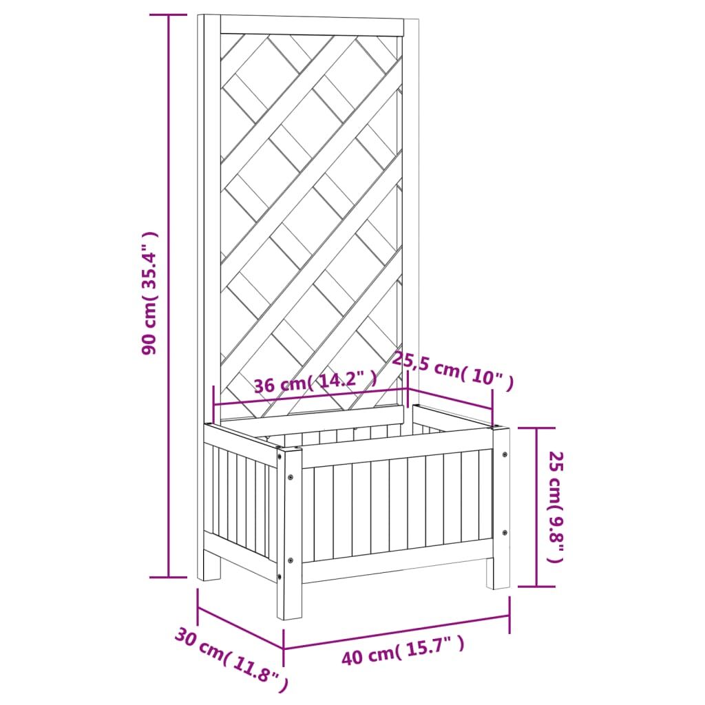 This wooden planter with trellis is an excellent choice for climbing plants in your garden, patio and terrace. Solid fir wood: Solid fir wood is a beautiful and durable material that maintains its integrity even when exposed to moisture. It does not dry out or warp, making it a reliable choice.Sufficient space: This garden planter is wide and deep enough, providing ample room for growing a variety of plants, flowers, and vegetables. Additionally, the hollow bottom allows for good ventilation and drainage.Trellis fence panel: The patio planter comes with a beautiful trellis fence panel that is perfect for supporting climbing and hanging plants like roses, ivy, or vines. It also adds a stunning visual feature to your outdoor space.Wide applications: This outdoor planter has a natural and stylish appearance, perfect for any garden. It can be placed in a patio corner or leaned against a wall or fence. Good to know:The delivery includes the planter only; the liner is not included.
