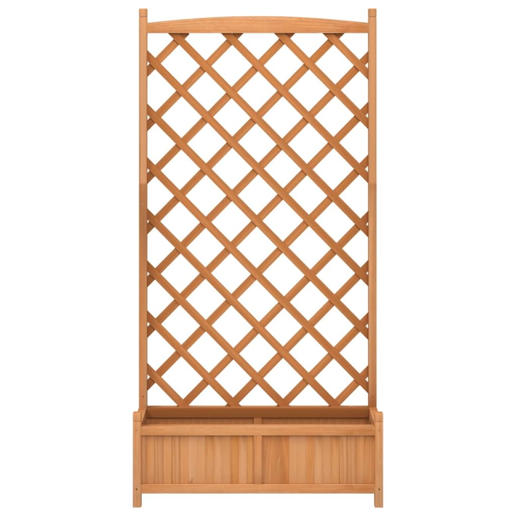 This wooden planter with trellis is an excellent choice for climbing plants in your garden, patio and terrace. Solid fir wood: Solid fir wood is a beautiful and durable material that maintains its integrity even when exposed to moisture. It does not dry out or warp, making it a reliable choice.Sufficient space: This garden planter is wide and deep enough, providing ample room for growing a variety of plants, flowers, and vegetables. Additionally, the hollow bottom allows for good ventilation and drainage.Trellis fence panel: The patio planter comes with a beautiful trellis fence panel that is perfect for supporting climbing and hanging plants like roses, ivy, or vines. It also adds a stunning visual feature to your outdoor space.Wide applications: This outdoor planter is designed with a round top bar, giving it a stylish and elegant appearance that complements any outdoor space. It can be placed in a patio corner or leaned against a wall or fence. Good to know:The delivery includes the planter only; the liner is not included.