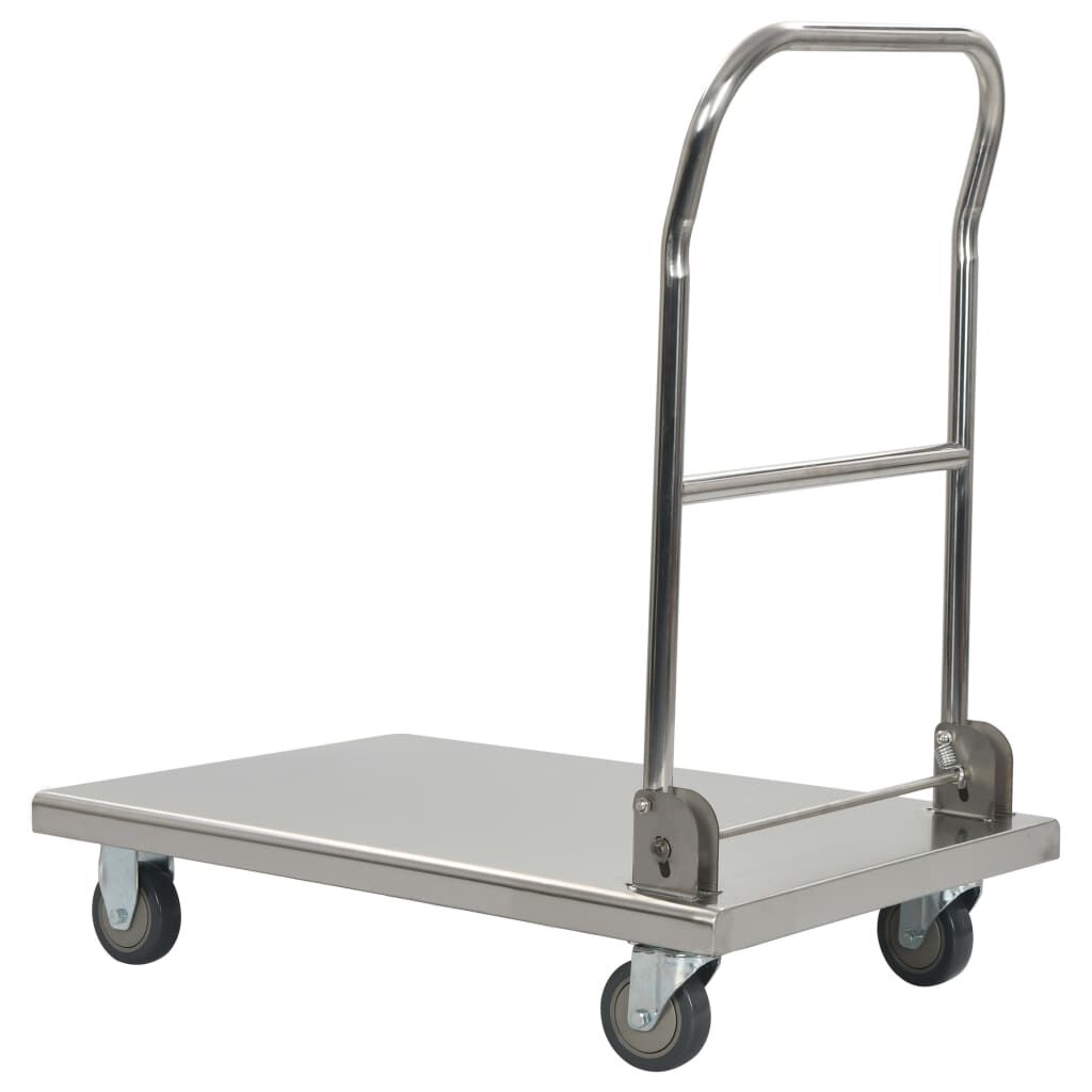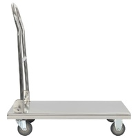 This multi-purpose platform wagon which is safe and effortless is perfectly suitable for transporting heavy objects in kitchens, hotels or warehouses. Made of stainless steel, the platform cart is highly durable and hardwearing which has a maximum load capacity of 200 kg. Additionally, it can be easily folded by foot control to save space when not in use. The platform cart is equipped with 2 swivel castors and 2 fixed castors which ensure a smooth and quiet transport. The platform wagon is easy to assemble.