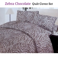 Add some safari pattern into your bedroom with this 3 Pce Zebra Chocolate White Quilt Cover Set. This quilt cover features a stunning zebra skin design printed in white and chocolate colour tones that will add personality to your bedroom. A lovely set made from easy care and soft touch Polyester cotton fabric which requires little or no ironing.