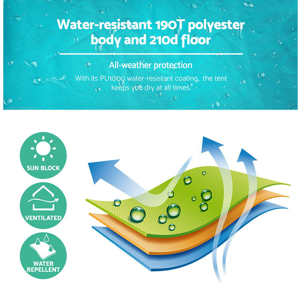 On the beach, in the forest, up in the hills, roaming through the outback or just hanging out in the backyard, our Weisshorn Pop-Up Tent is your handy shelter in the open anytime of the year. With ample room for three persons, the pop-up tent features a heavy-duty 190T PU material construction with water and UV resistance and has a silver-coated interior that provides more light and reduces heat accumulation. Setting it up is super-easy – just throw it onto the ground to let it pop up by itself, then anchor to the ground with included pegs. Packing up is just as simple as folding the tent and storing it neatly into the carry bag with the pegs. Whatever your passion, take the Weisshorn Pop-Up Tent with you and have some memorable moments to treasure under the skies.