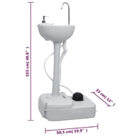 This portable camping handwash stand and water tank set is perfect for camping, motorhome trip, construction site, food event, pop kiosk, etc. with its lightweight and compact design. Multifunctional handwash stand: The handwash station is fitted with a soap dispenser, a towel rack, and a freshwater tank to meet your different needs. It features a hands-free operation by stepping on the foot pump to provide a stream of water.Wheeled water tank: The water tank offers sufficient water storage for emergency use. Several water outlets allow water to flow in and out quickly. The top handle and wheels make it easily transported.Durable material: The camp set is made of strong high-density polyethylene, making it resistant to shock and impact for durability. Note:Each product comes with an assembly manual in the box for easy assembly.