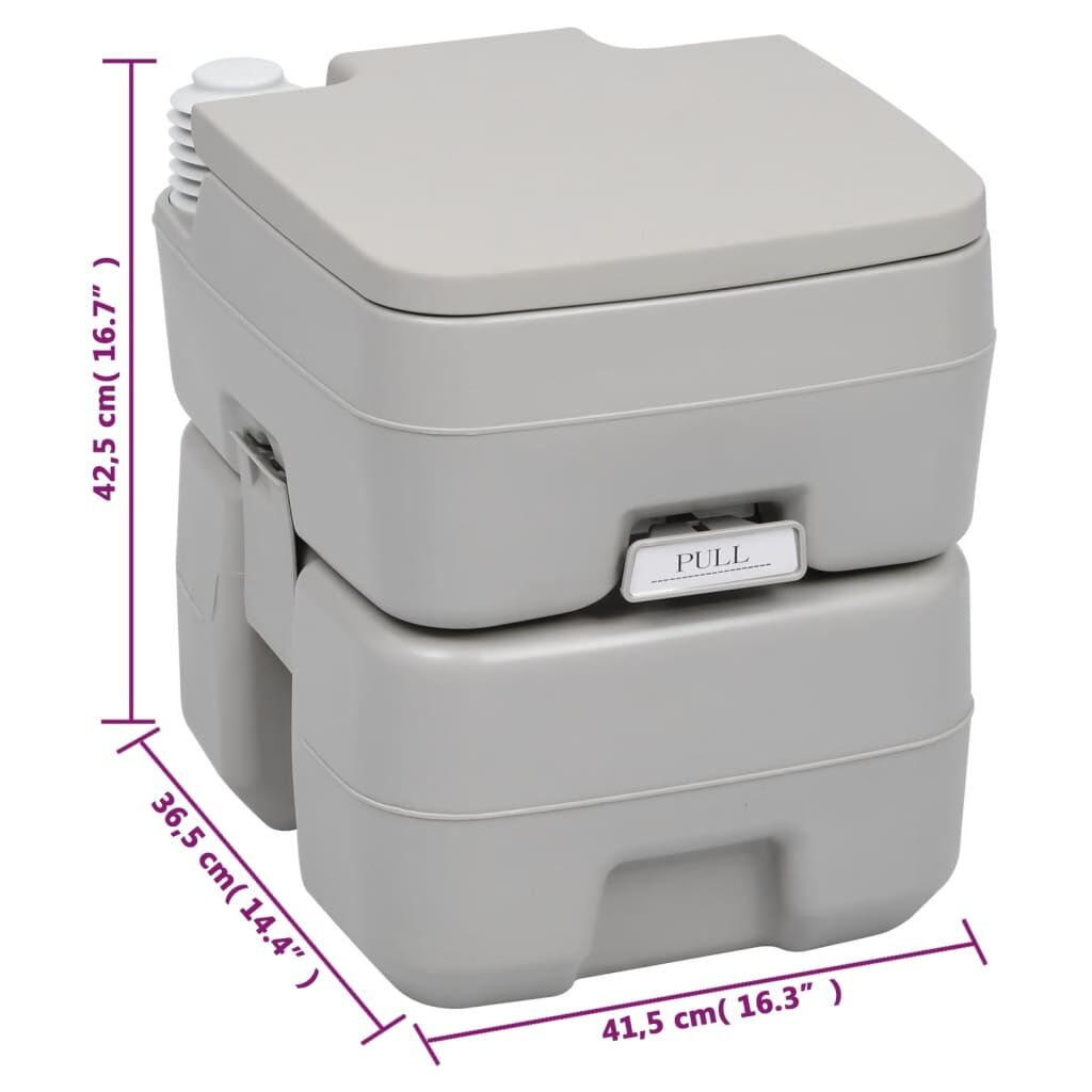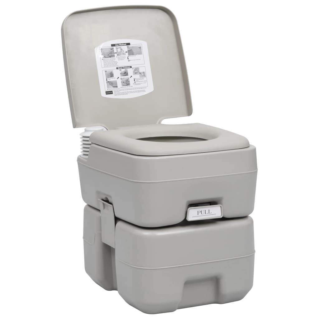 This portable camping toilet and handwash stand set is perfect for camping, motorhome trip, construction site, food event, pop kiosk, etc. with its lightweight and compact design. Practical toilet: The toilet has a 20-litre waste holding tank that makes it adequate to use for 4-5 days for an adult. The mobile toilet is designed with T-type and 3-way flushing to make waste removal easier.Multifunctional handwash stand: The handwash station is fitted with a soap dispenser, a towel rack, and a freshwater tank to meet your different needs. It features a hands-free operation by stepping on the foot pump to provide a stream of water.Wheeled water tank: The water tank offers sufficient water storage for emergency use. Several water outlets allow water to flow in and out quickly. The top handle and wheels make it easily transported.Durable material: The camp set is made of strong high-density polyethylene, making it resistant to shock and impact for durability. Note: Each product comes with an assembly manual in the box for easy assembly.