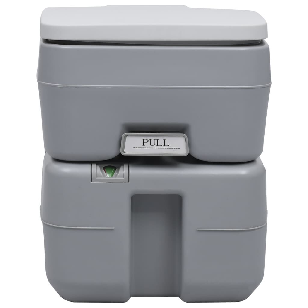 This portable camping toilet and water tank set is perfect for camping, motorhome trip, construction site, food event, pop kiosk, etc. with its lightweight and compact design. Practical toilet: The toilet has a 20-litre waste holding tank that makes it adequate to use for 4-5 days for an adult. The mobile toilet is designed with T-type and 3-way flushing to make waste removal easier.Wheeled water tank: The water tank offers sufficient water storage for emergency use. Several water outlets allow water to flow in and out quickly. The top handle and wheels make it easily transported.Durable material: The camp set is made of strong high-density polyethylene, making it resistant to shock and impact for durability. Note:Each product comes with an assembly manual in the box for easy assembly.