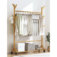 $45.11If you are looking for a simple yet functional portable clothes rack to help you expand your closet space, consider the Randy and Travis Machinery Portable Clothes Rack. It comes complete with extra pegs at both ends so that you can hang your hats, scarves and bags out of the way. Its clean lines and sturdy frame offer plenty of additional storage for clothing that you need to hang. It also features a storage shelf at the bottom for you to organise all of your bulky items such as boxes, shoes, linen and bedding. The simple yet understated natural look of the bamboo is stylish and blends easily into any decor, making it a convenient addition to any home.