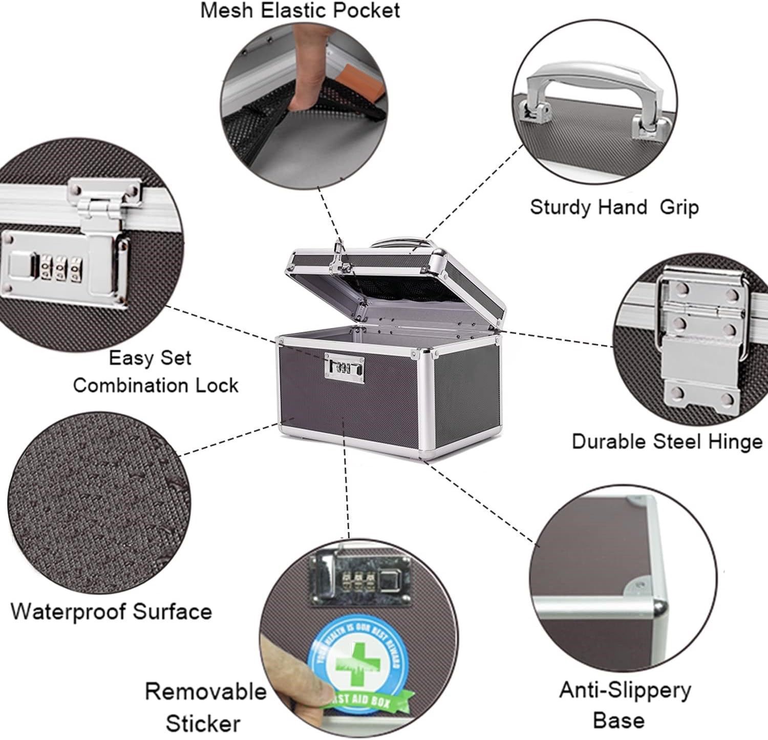 Combination Medicine Box Portable Storage Lockbox (Coffee/Small)