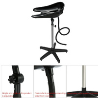 The basin's height and angles are adjustable, to suit individual customers. The basin has a stable five point base. A drain hose is attached to empty out the water, and the smooth surface makes the basin very easy to clean.
