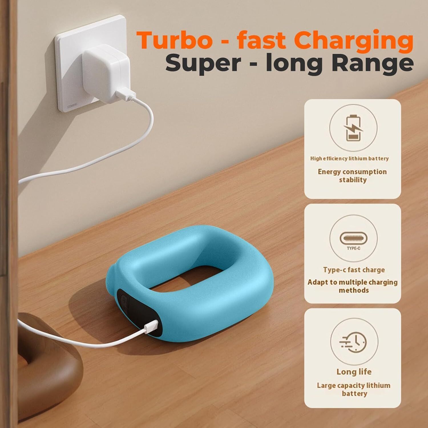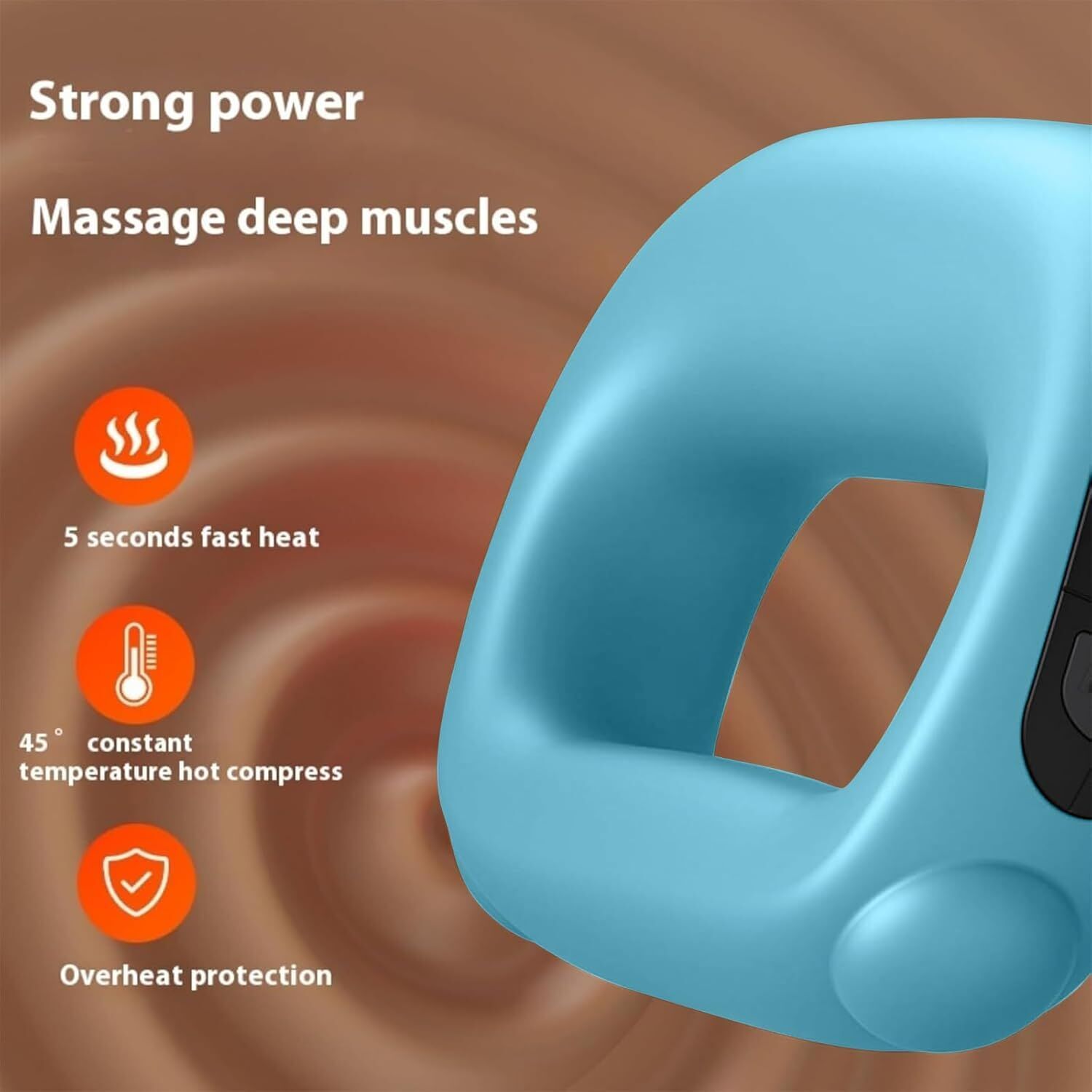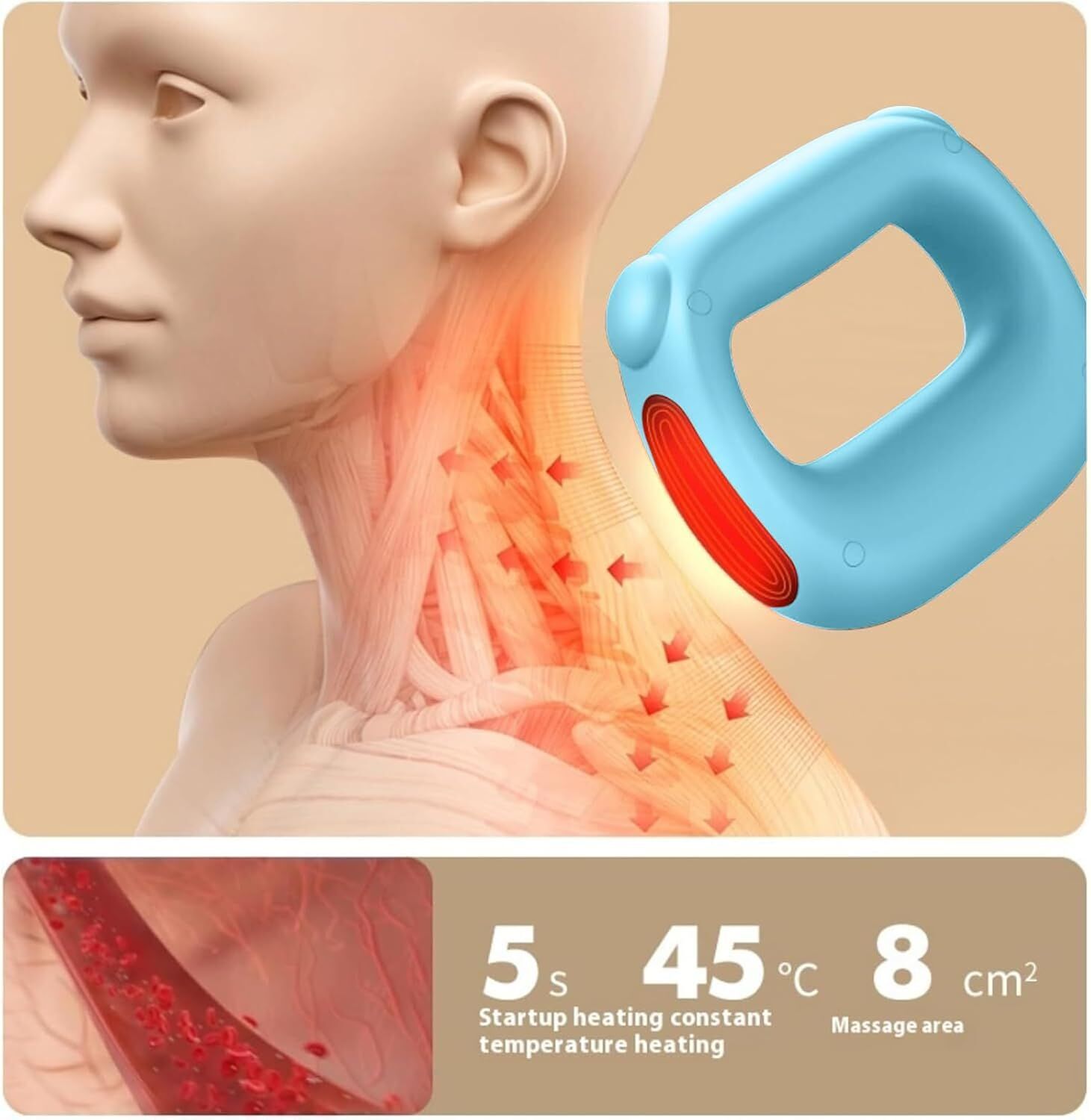 Portable Heated Fascia Ring Massager with 5-Speed Vibration USB-C Charging Deep Tissue Muscle Relief for Neck, Back, and Shoulders (Blue)
