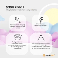 Take your printing needs wherever you go with our Social Hike Mini Portable Printer! Whether you're at home, in the office, or on an adventure, this compact and lightweight printer is designed to meet your on-the-go lifestyle. With easy Bluetooth connectivity, built-in rechargeable battery, and utilising thermal inkless printing technology, you can quickly pair and print crisp and clear photos, labels or stickers in seconds.