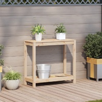 This wooden potting table is perfect for organising and displaying your potted plants at home, in a garden, on a patio, or on a terrace. Solid pine wood: The potting bench table is made of solid pine wood for sturdiness and stability. Solid pine wood is a beautiful natural material. Pine wood has a straight grain, and the knots give the material its signature, rustic look.Ample storage space: The potting workbench with 1 open shelf provides sufficient space for related goods such as small gardening tools, soil, fertilisers, etc.Ventilated: This outdoor potting bench with a slat design allows water flow, making it not easy to rot and ensuring a long service life.Multiple applications: The potting station can not only bring a sense of nature to your space but can also be a perfect addition to your courtyard, garden, greenhouse, and more. Good to know:To make sure your outdoor furniture stays beautiful, we recommend protecting it with a waterproof cover.