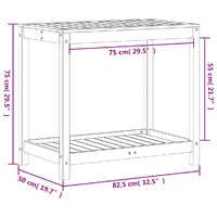 This wooden potting table is perfect for organising and displaying your potted plants at home, in a garden, on a patio, or on a terrace. Solid pine wood: The potting bench table is made of solid pine wood for sturdiness and stability. Solid pine wood is a beautiful natural material. Pine wood has a straight grain, and the knots give the material its signature, rustic look.Ample storage space: The potting workbench with 1 open shelf provides sufficient space for related goods such as small gardening tools, soil, fertilisers, etc.Ventilated: This outdoor potting bench with a slat design allows water flow, making it not easy to rot and ensuring a long service life.Multiple applications: The potting station can not only bring a sense of nature to your space but can also be a perfect addition to your courtyard, garden, greenhouse, and more. Good to know:To make sure your outdoor furniture stays beautiful, we recommend protecting it with a waterproof cover.