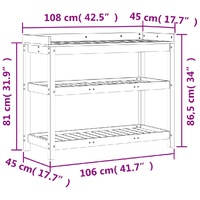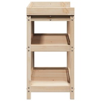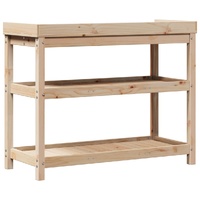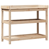 This wooden potting table is perfect for organising and displaying your potted plants at home, in a garden, on a patio, or on a terrace. Solid pine wood: The potting bench table is made of solid pine wood for sturdiness and stability. Solid pine wood is a beautiful natural material. Pine wood has a straight grain, and the knots give the material its signature, rustic look.Ample storage space: The potting workbench with open shelves provides sufficient space for related goods such as small gardening tools, soil, fertilisers, etc.Ventilated: This outdoor potting bench with a slat design allows water flow, making it not easy to rot and ensuring a long service life.Multiple applications: The potting station can not only bring a sense of nature to your space but can also be a perfect addition to your courtyard, garden, greenhouse, and more. Good to know:To make sure your outdoor furniture stays beautiful, we recommend protecting it with a waterproof cover.