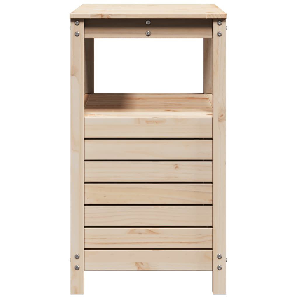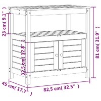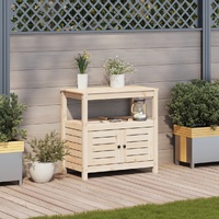 This wooden potting table is perfect for organising and displaying your potted plants at home, in a garden, on a patio, or on a terrace. Solid pine wood: The potting bench table is made of solid pine wood for sturdiness and stability. Solid pine wood is a beautiful natural material. Pine wood has a straight grain, and the knots give the material its signature, rustic look.Ample storage space: The potting workbench with storage cabinet provides sufficient space for related goods such as small gardening tools, soil, fertilisers, etc.Ventilated: This outdoor potting bench with a slat design allows water flow, making it not easy to rot and ensuring a long service life.Multiple applications: The potting station can not only bring a sense of nature to your space but can also be a perfect addition to your courtyard, garden, greenhouse, and more. Good to know:To make sure your outdoor furniture stays beautiful, we recommend protecting it with a waterproof cover.