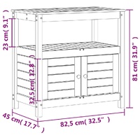 This wooden potting table is perfect for organising and displaying your potted plants at home, in a garden, on a patio, or on a terrace. Solid douglas wood: The potting bench table is made of solid douglas wood for sturdiness and stability. Solid douglas wood is a highly durable wood that works well for outdoors. Douglas wood is also strong enough to work with minimum care, even under the influence of the weather.Ample storage space: The potting workbench with storage cabinet provides sufficient space for related goods such as small gardening tools, soil, fertilisers, etc.Ventilated: This outdoor potting bench with a slat design allows water flow, making it not easy to rot and ensuring a long service life.Multiple applications: The potting station can not only bring a sense of nature to your space but can also be a perfect addition to your courtyard, garden, greenhouse, and more. Good to know:To make sure your outdoor furniture stays beautiful, we recommend protecting it with a waterproof cover.