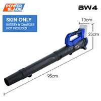 Powered by a PowerBlade 20V lithium-ion battery (sold separately), the BW4 blower is just one of a wide range of PowerBlade cordless tools. It is the perfect balance of power and convenience, making yard work effortless. Its high-performance copper motor, paired with 20V of power, delivers an impressive airspeed of 160km/h and air volume of 280 CFM - all while operating quietly! Clearing leaves and debris has never been easier.