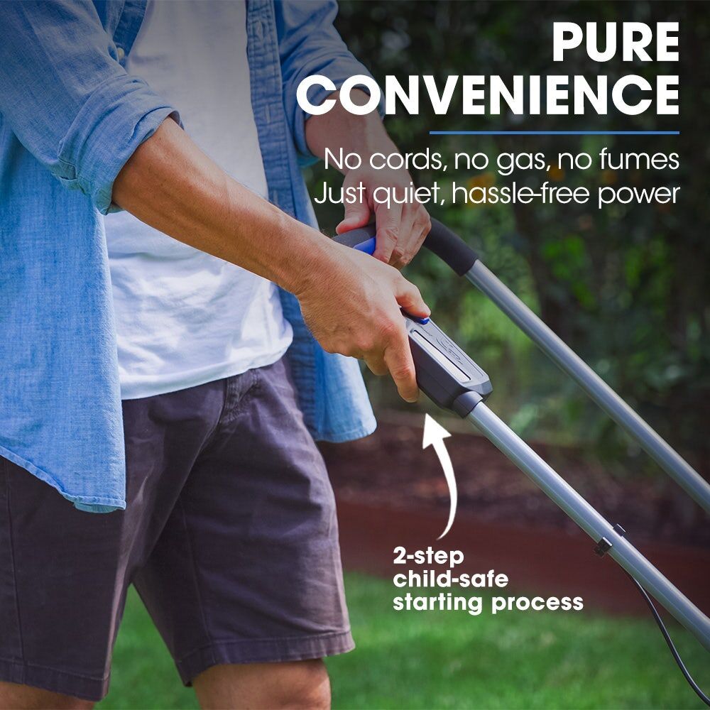The 350CX is powered by a PowerBlade 20V 4Ah battery, which is compatible across the PowerBlade 20V range. With 5 adjustable cutting height settings, you can tailor the mower to suit your lawn's needs.The compact lightweight 12kg design makes it perfect for townhouses, villas and houses with small lawns, and the handle ensures it can be easily carried.