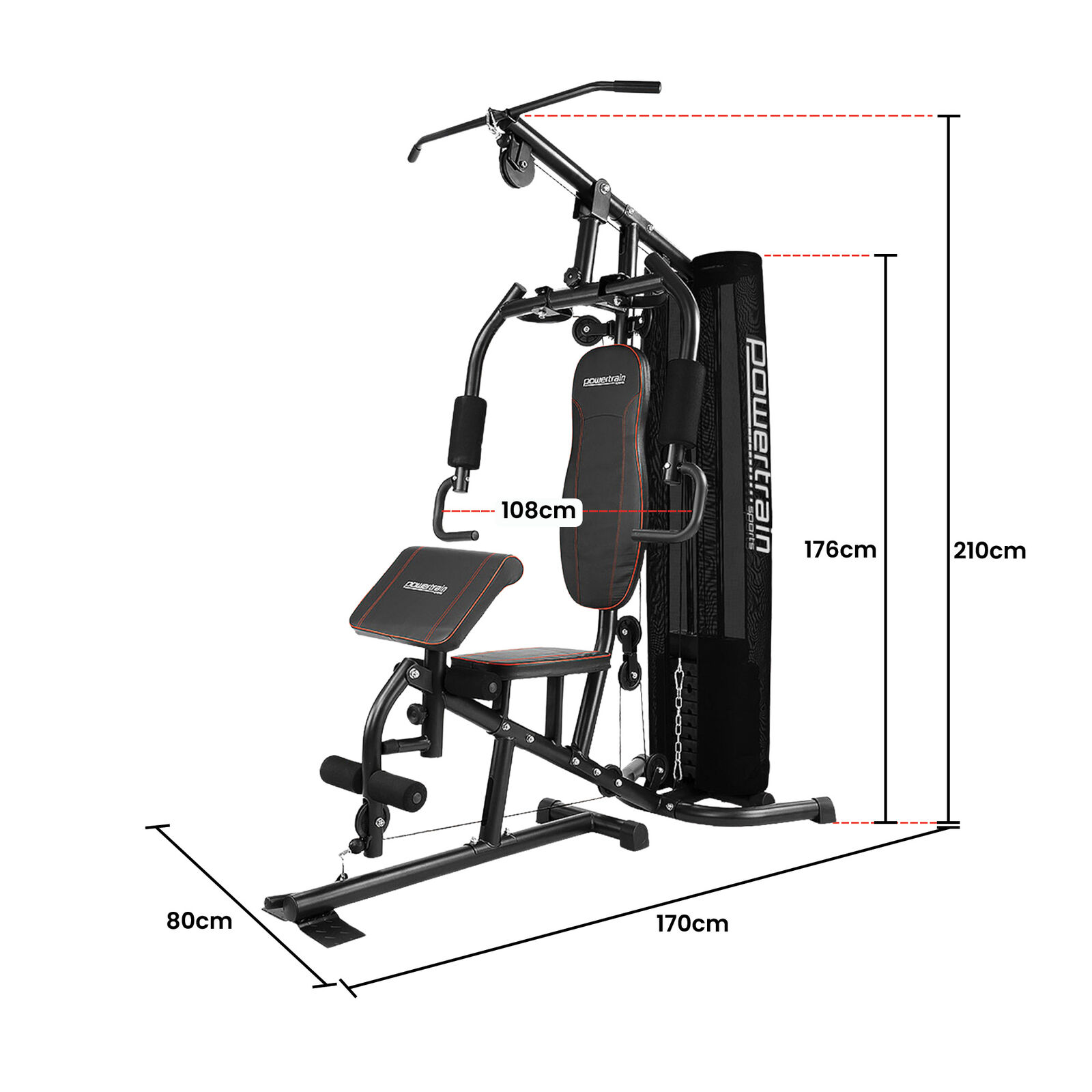 Powertrain Multi Station Home Gym with 68kg Weights Preacher Curl Pad