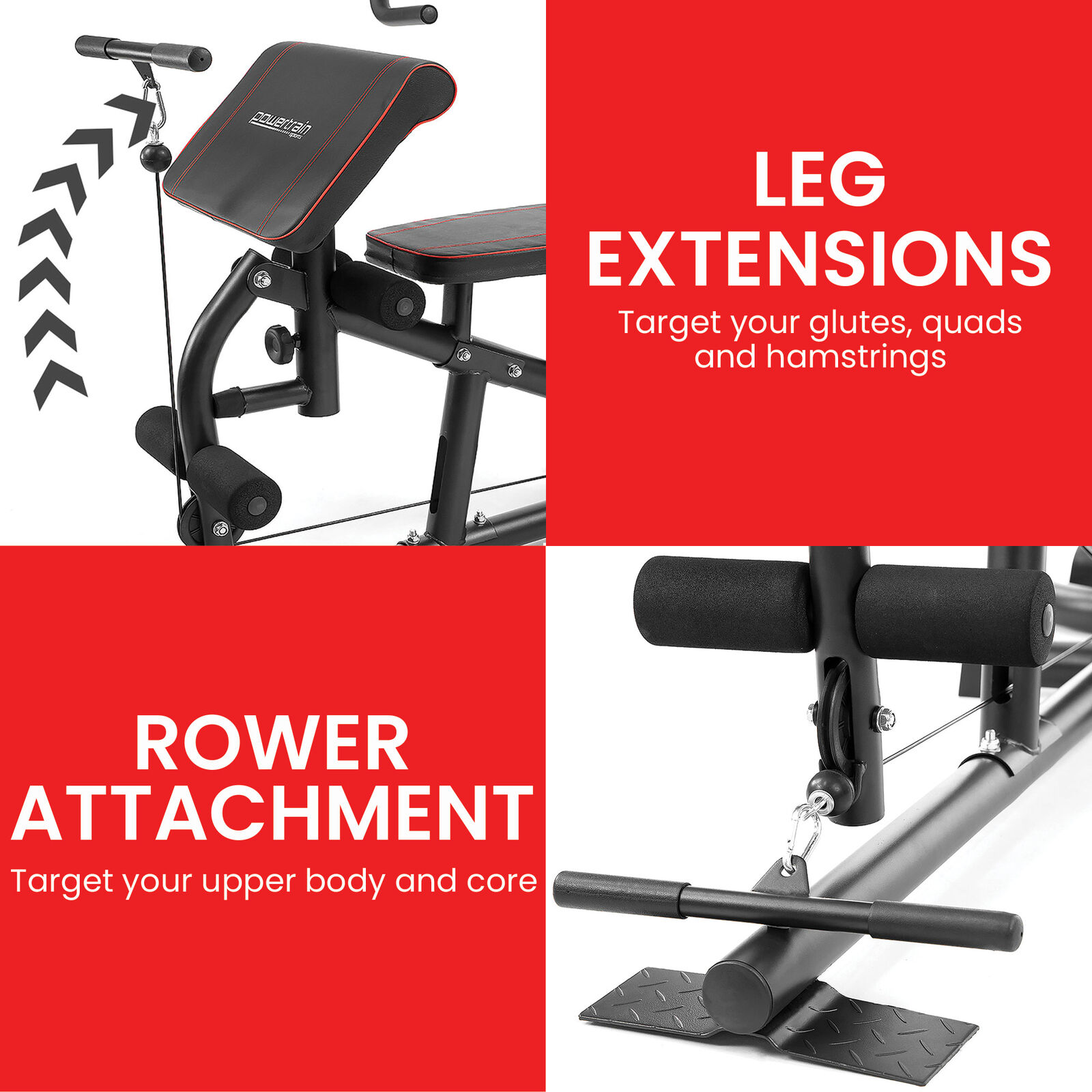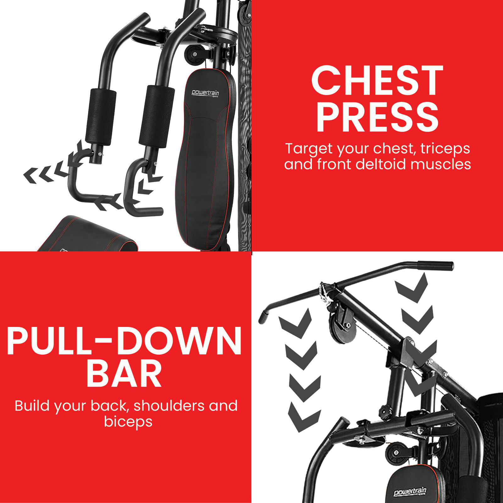 Why spend on a gym membership when you can have a full-body workout at home? The Powertrain total body multi-station home gym is the ultimate in exercise equipment, letting you do rows, pec decks, knee raises, preacher curls, wrist curls, leg extensions, arm pullovers, lat pulls, vertical bench presses, and more in just one mean home gym machine!